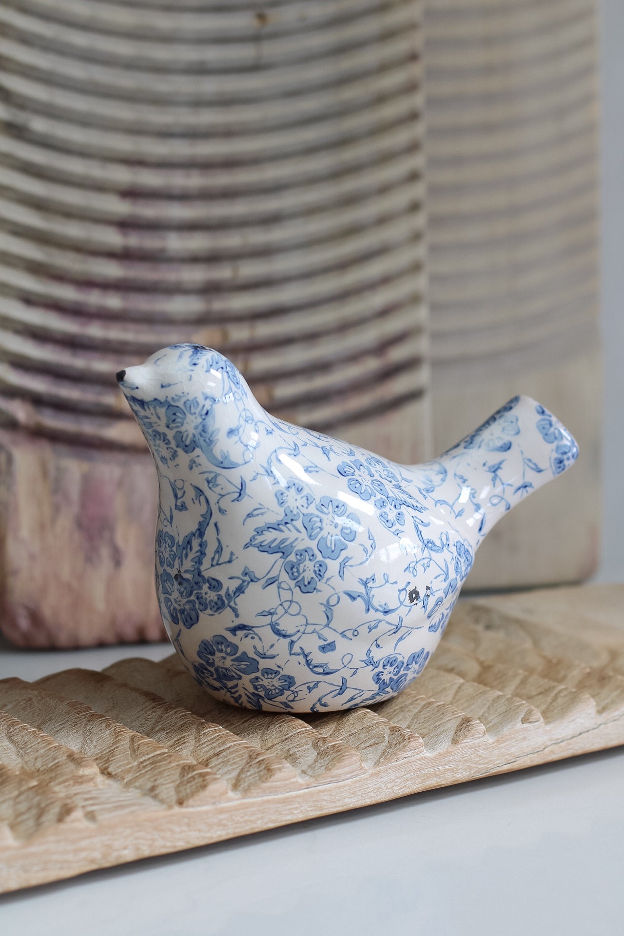 Add charm to any space with this vintage blue floral ceramic bird. Made from high-quality ceramic, it features beautiful floral detailing and a rustic finish. The soft blue tones and aged glaze give it a timeless feel, perfect for classic or country-style interiors.