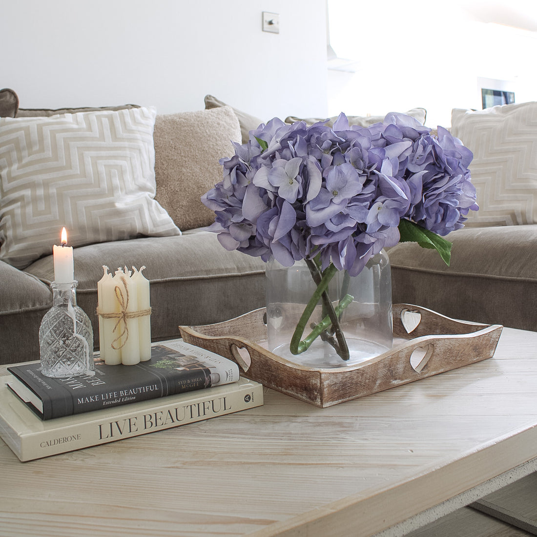 - Add a vase of flowers to your coffee table to add a touch of colour and life. Choose flowers that complement the décor of your living room.
