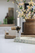 Introducing our Glass Bottle with Antique Brass Leaves Chamberstick – a fusion of vintage charm and modern elegance. This exquisite piece, adorned with antique brass leaves, is the perfect companion for your favourite dinner candles. The glass bottle adds a touch of sophistication, while the chamberstick design brings timeless allure. Elevate your dining experience with this unique and stylish addition – the perfect marriage of functionality and aesthetics. Illuminate your evenings with grace and beauty using our Glass Bottle with Antique Brass Leaves Chamberstick.