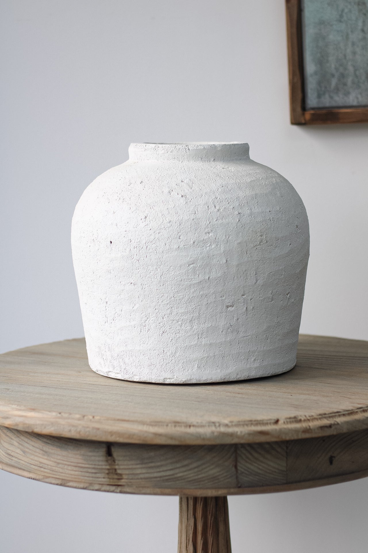 The white rustic vase pairs beautifully with both modern and traditional decor. Its neutral tones allow it to fit seamlessly into any space, while the weathered texture brings an organic charm. Fill it with seasonal blooms or lush greenery for a fresh look, or leave it empty as a standalone piece.