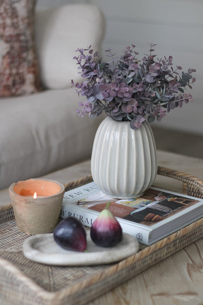 Bring the warmth of the season indoors with our faux burgundy tipped eucalyptus bush. Its deep autumn tones add instant charm. The rich burgundy tips and soft green leaves mimic nature beautifully without the upkeep of real foliage. This bushy arrangement is perfect for styling in vases or planters. Because it’s full and textured, it creates impact with just one or two stems. Try mixing with faux berries or dried grasses for more seasonal flair.