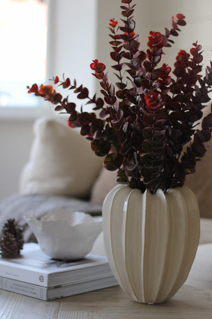 Infuse your home with the rich hues of Autumn using our Faux Rustic Deep Burgundy Eucalyptus Stem. This beautifully designed stem features deep burgundy tones that evoke the warmth and cosiness of autumn. Perfect for adding a touch of seasonal elegance to your floral arrangements, wreaths, or tabletop displays, this eucalyptus stem effortlessly complements your autumn decor. Crafted with attention to detail, it brings a natural, rustic charm to any space.