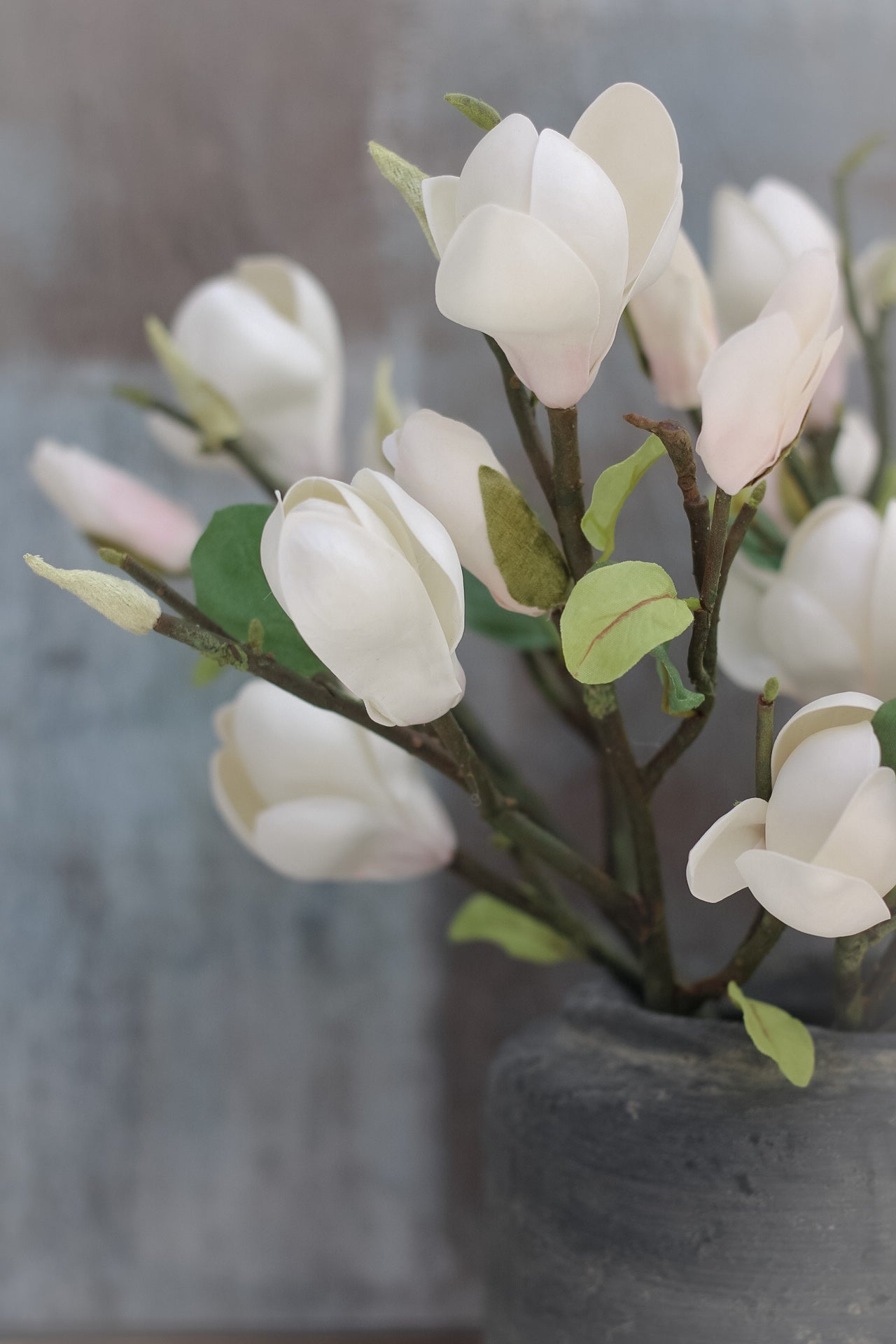 Make a statement with this elegant faux white magnolia stem, and transform your home with its understated beauty.