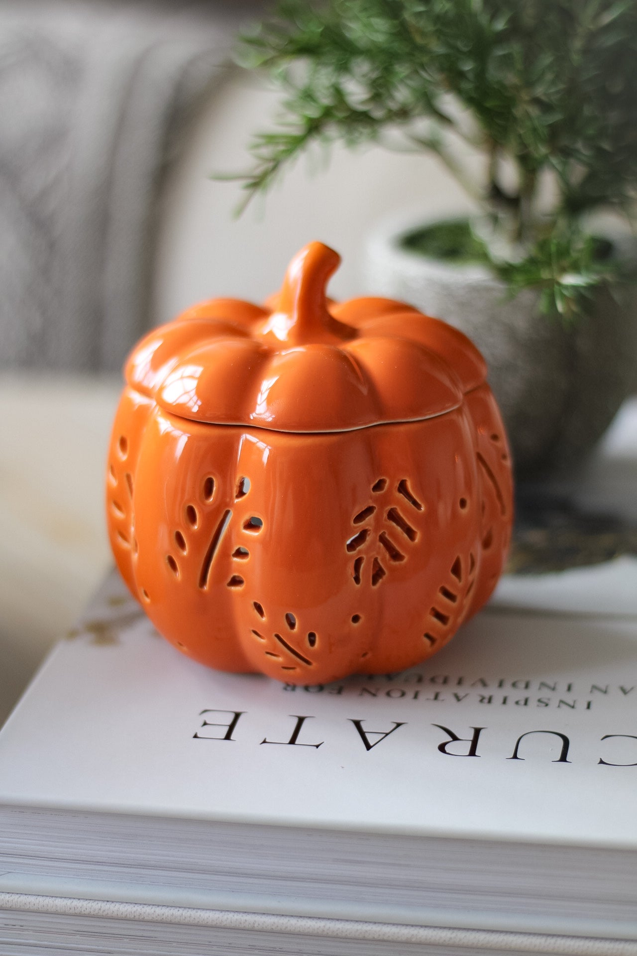Orange Autumn Leaves Ceramic Pumpkin Wax Burner