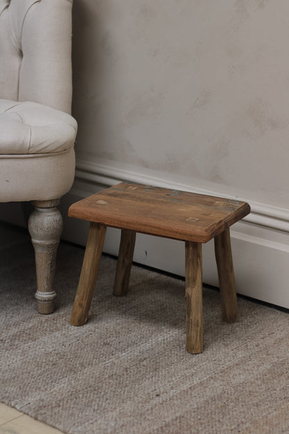 Add a touch of rustic charm to your home with our small reclaimed wooden stool. Perfect as a side table, this versatile piece offers both functionality and style. Crafted from reclaimed wood, it brings a unique, eco-friendly element to your decor. Enhance your living space with this lovely, rustic addition.