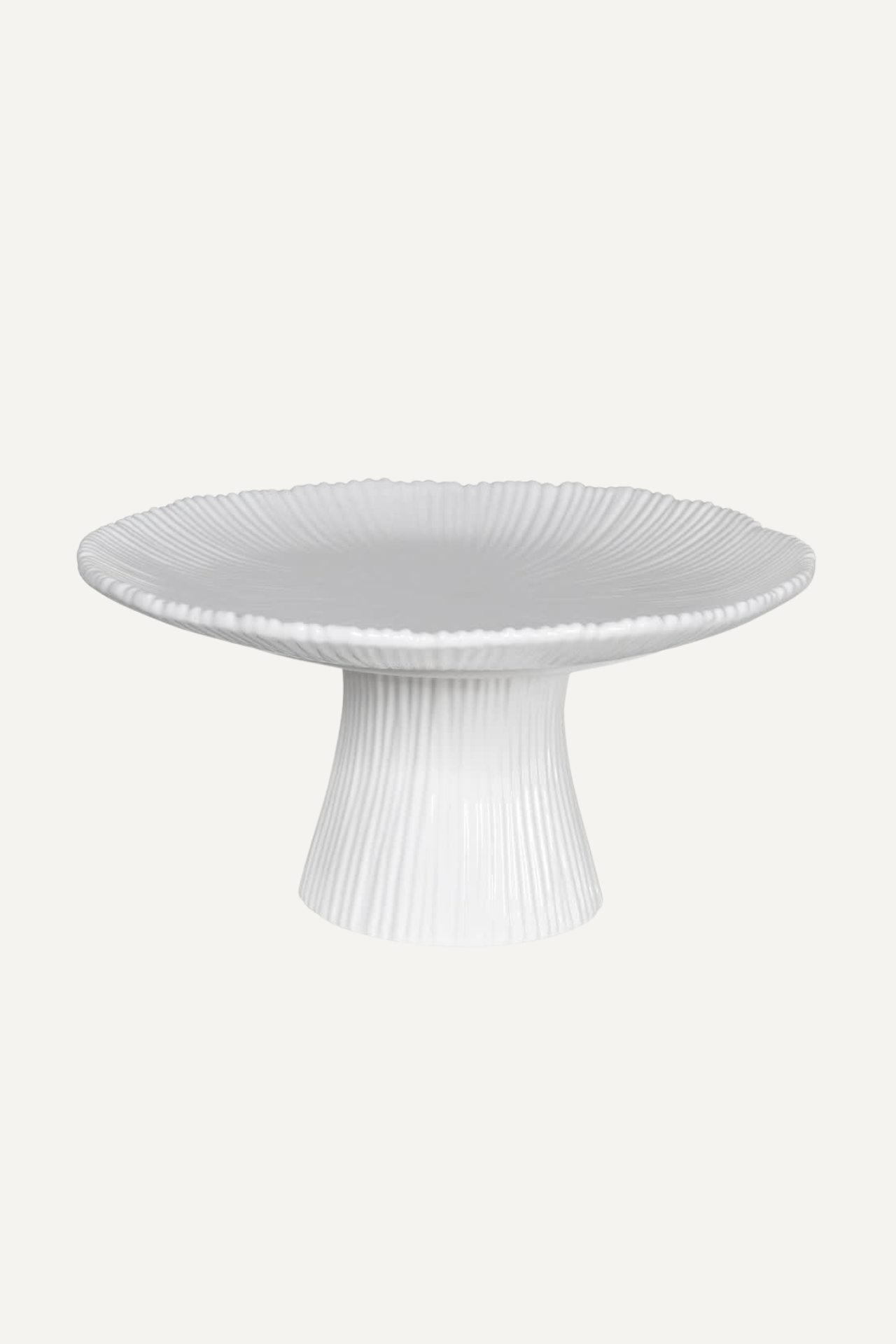 Display your tasty treats in style with this white ceramic cake stand. Its elegant organic ridged design makes it perfect for showcasing cakes, pastries, or festive nibbles. Whether it’s a centrepiece for a dessert table or a casual tea with friends, this stand adds a touch of sophistication to any occasion.