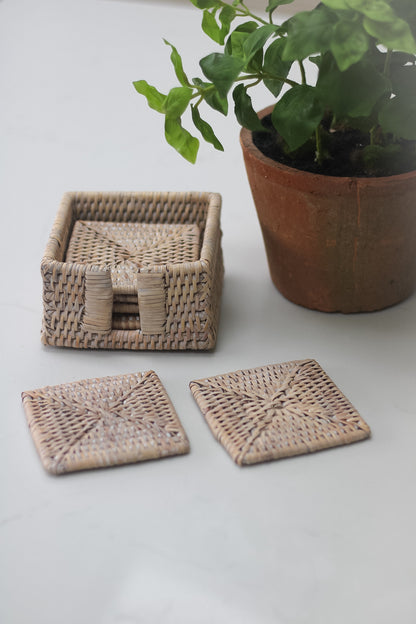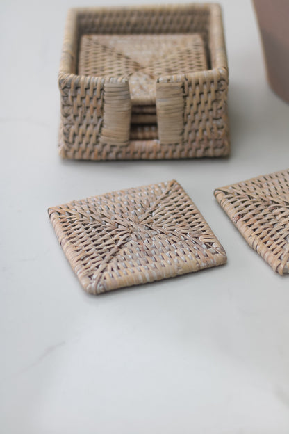 Whitewashed Square Rattan Coasters | Set of 6